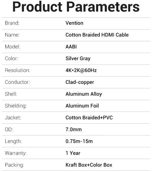 Vention Cable HDMI 2.0 - Trenzado Textil - Contactos Dorados - Soporte 4K, HDR, 3D - Apantallado