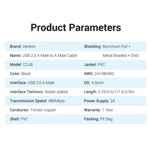 Vention Cable USB 2.0 Macho a USB Macho - 0.25m