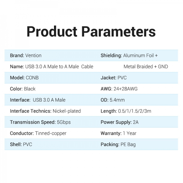 Más información sobre Vention Cable USB 3.0 Macho a USB Macho - 50cm - Negro