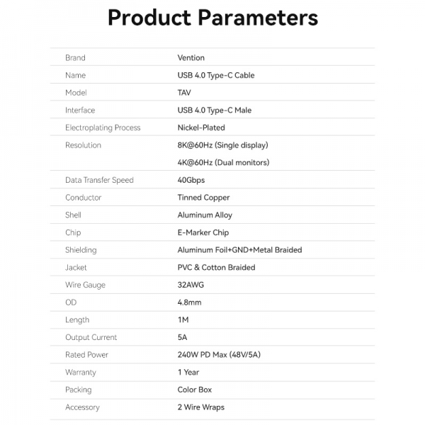 -Cable USB 4.0 con todas las funciones