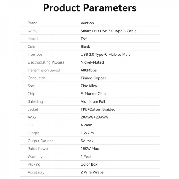 Cable trenzado de algodón USB 2.0 C macho a C macho 5A con tipo de aleación de zinc negro con pantalla LED