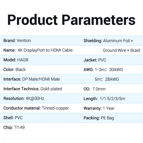 VENTION - 4K DP DISPLAYPORT X CABLE HDMI